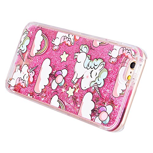 WeLoveCase - Cover iPhone SE con liquido interno, cover luccicante per iPhone 5S con liquido e glitter. Cover protettiva trasparente rigida con unicorni. Cover per Apple iPhone 5 5S SE, Pink, iPhone 6 6S Plus