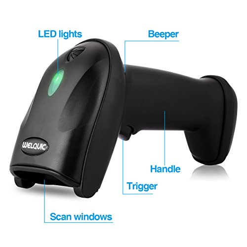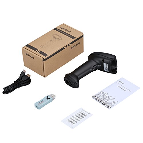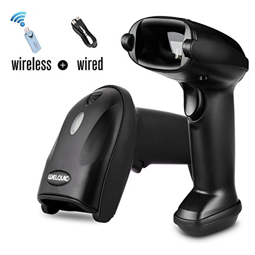 WELQUIC Lettore Codici Barcode Scanner con Cavo USB Senza Fili(2.4GHz 300 scans/Sec) per Negozi Magazzino Supermercato, Nero
