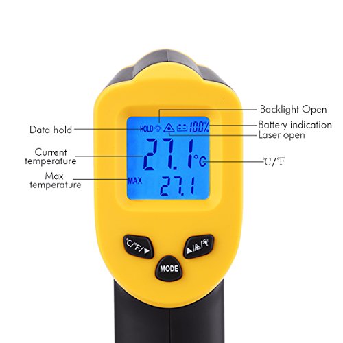 ECCELLENTE PRESTAZIONE:Un ampio intervallo di temperature: da -58 ° F a 1022 ° F (-50 ° C a 550 ° C) con una precisione di ± 1,5 ° C / ± 1,5%, ideale per edilizia generale, elettrica, HVAC, servizio di ristorazione, casa ispezione, operazioni impiantistiche e applicazioni automobilistiche.