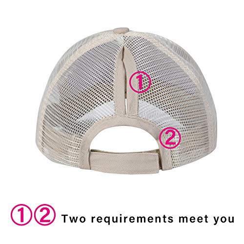 WELROG Cappelli da Baseball Ponytail Testa per Donne, Cappello da Sun Messy High Bun Ponycaps Cotone Regolabile e Mesh Trucker Baseball cap (Beige # 2)