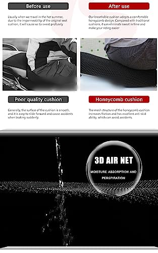 Cuscino per moto, Circolazione costante dell'aria e raffreddamento durante la guida, Mantiene il sedile asciutto anche sotto la pioggia, Non si riscalda nemmeno in pieno sole