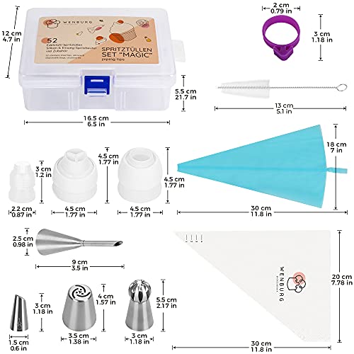 Wenburg Facile da Usare Sacca a Poche per Dolci - 100 Pezzi - Versatile Beccucci Sac a Poche per Torte in Acciaio Inox - Bocchette Sac a Poche Professionali - Set di Beccucci Russi (MAGIC)