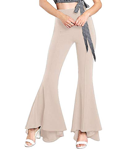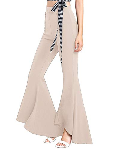 Wenchuang Donna Pantaloni Lunghi a Zampa Vita Alta Pantalone