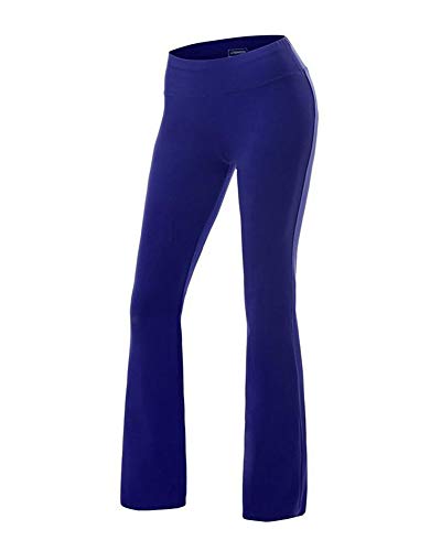 Wenchuang Pantalone Largo da Yoga Donna Pantaloni a Zampa D'Elefante Blu L