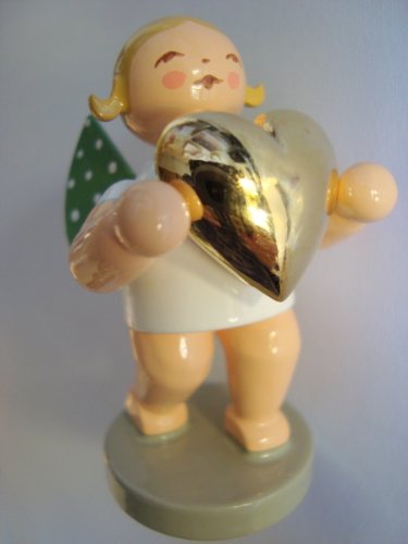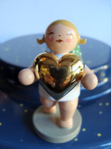 Wendt & Kühn 3 - Statuetta di angelo con cuore dorato, altezza: 5-6 cm