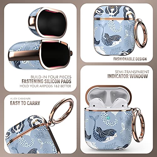 Wenew Custodia protettiva per Apple AirPods 2 AirPods 1, motivi carini, custodia rigida antiurto con portachiavi portatile per donne, ragazze, bambini, uomini (sirena)