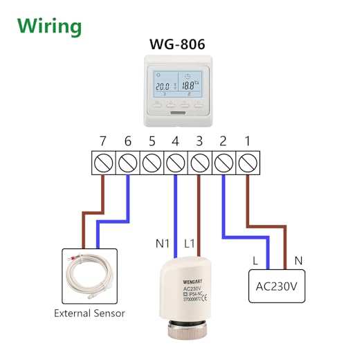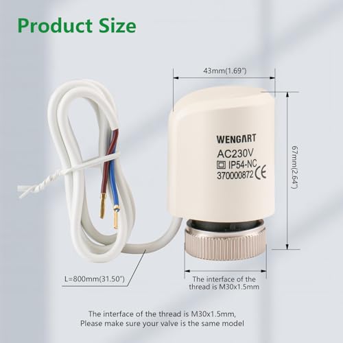 Wengart Attuatore termico elettrico WG37, normalmente chiuso 2 fili AC230V M30x1.5 per collettori di riscaldamento a pavimento