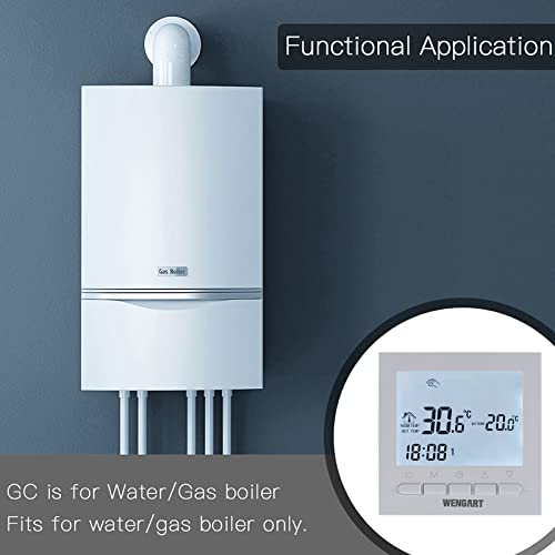 Wengart Termostato per camino a gas WG02B04BW, grande display LCD digitale, programmabile, alimentato a batteria, connettore per filo COM-NO-NC,retroilluminazione bianca