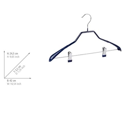 Gruccia per armadi con fermaglio metallico e 2 clip di fissaggio per i pantaloni e le gonne.