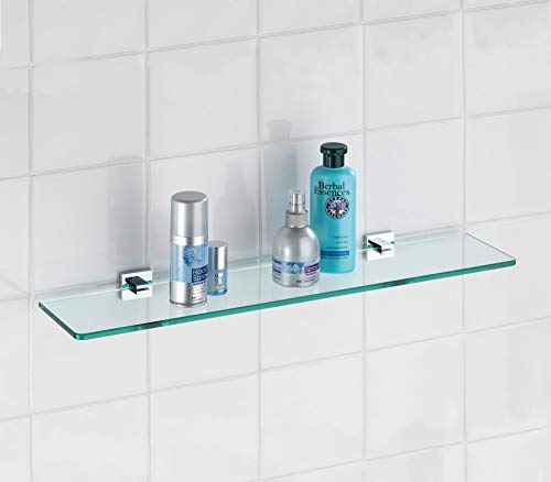 Ripiano in vetro trasparente ideale per il fissaggio fra il lavandino e lo specchio