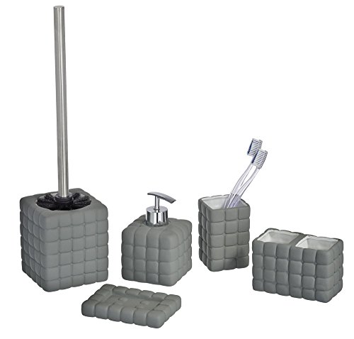 Wenko 20204100 Cube Soft-Touch - Porta spazzolini, in Ceramica, 12,5 x 10 x 6,5 cm, Colore: Grigio