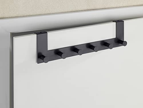 WENKO Appendiabiti Celano con 6 ganci in acciaio verniciato per porte di spessore fino a 2 cm, qualità pesante, 39 x 11 x 5,5 cm, colore: nero