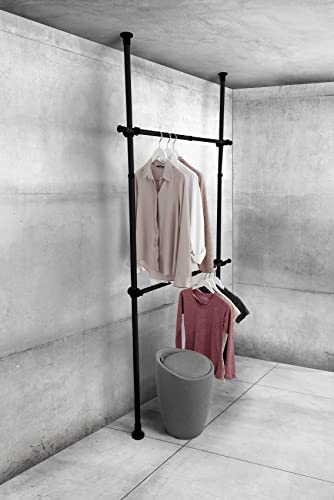 Un design moderno: Il sistema telescopico Herkules colpisce per il suo colore nero di gran moda. Perfetto per il moderno stile industrial-chic o per arredi classico-eleganti. Il design funzionale e nel contempo trendy del sistema a guardaroba regolabile, pone abilmente i vostri abiti al centro della scena. Alle aste potete appendere anche borse o accessori specifici, trasformandoli in vere e proprie attrazioni.