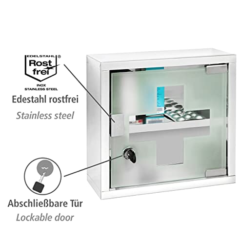WENKO Armadietto per i medicinali acciaio inossidable 25 x 25 cm - Armadietto per medicinali con serratura, Acciaio inossidabile, 25 x 25 x 12 cm, Lucido