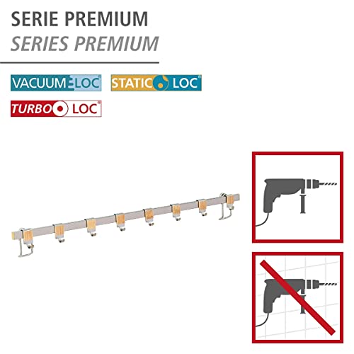 WENKO Barra con 8 ganci Premium, Metallo nichelato, 60 x 4 x 2.5 cm, Argento opaco