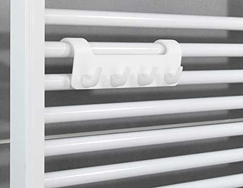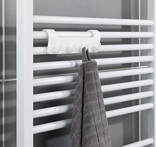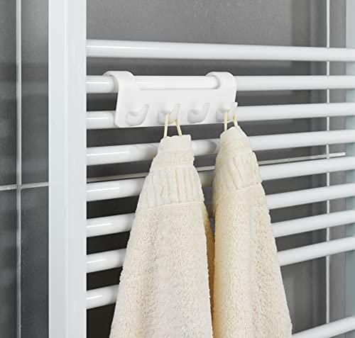 Entità della fornitura: 1 x barra con ganci per radiatore scaldasalviette di Maximex con quattro ganci, per radiatori con profilo rotondo fino a 2,7 cm, (L x H x P): 19,7 x 6,2 x 6 cm, bianco.