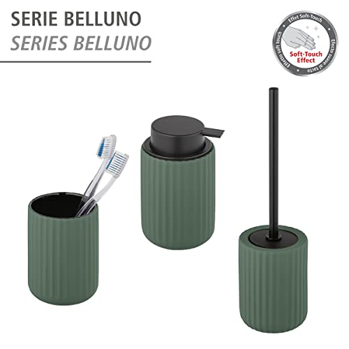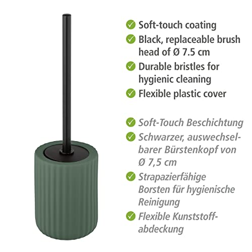 WENKO Set WC Belluno, pregiato portascopino in robusta ceramica dalle moderne forme tondeggianti, ciuffo igienico sostituibile, superficie solcata soft touch, colore verde/nero, Ø 11,5 x 42 cm