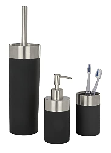 WENKO Bicchiere portaspazzolini Creta nero acciaio inossidabile - soft touch, Polistirolo, 7 x 11.1 x 7 cm, Nero