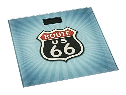 WENKO Bilancia persone Vintage Route 66 - Display LCD, Vetro temperato, 30.5 x 30.5 cm, Multicolore