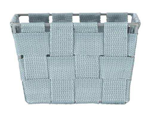 Cestino dal look intrecciato, nel delicato colore grigio-blu