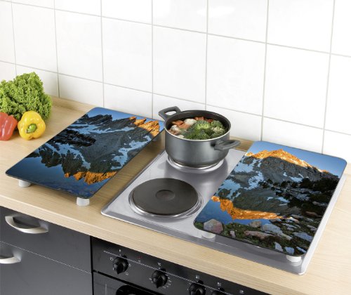 Wenko Coprifornelli Universal Sierra Nevada, Set 2 Pezzi per Tutti i Tipi di Piani Cottura, Vetro Temperato, Materiale Plastico, Multicolore/Grigio Chiaro