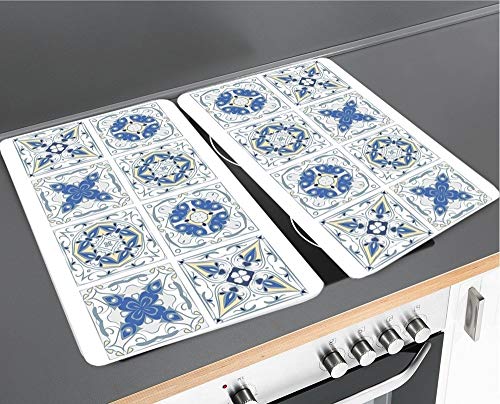 Design con funzione: le 2 piastre di copertura per fornelli con motivo a piastrelle alla moda in vetro resistente agli urti e ai graffi danno un tocco in più alla cucina, allo stesso tempo proteggono il vostro piano cottura in vetroceramica, elettrico o a gas