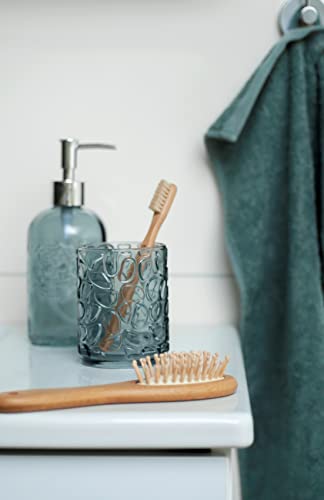 WENKO Dosatore di sapone Vetro grigio rotondo - Dispenser sapone liquido, dispenser detersivo piatti Capacità: 0.4 l, Vetro, 8.5 x 19 x 7.5 cm, Grigio