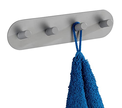 WENKO Gancio Strip Piceno Quadro grigio opaco acciaio inossidabile - Barra guardaroba, 4 ganci, autoadesiva, Acciaio inossidabile, 19.8 x 5 x 2 cm, Grigio