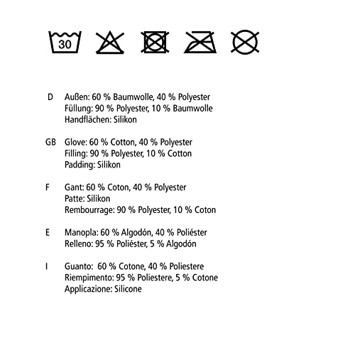 Guanto: 60 % Cotone, 40 % Poliestere, Riempimento: 95 % Poliestere, 5 % Cotone, Applicazione: Silicone