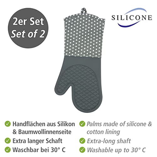 WENKO Guanto cucina silicone grigio 2 pezzi - un paio, Cotone, 18.5 x 37.5 cm, Grigio