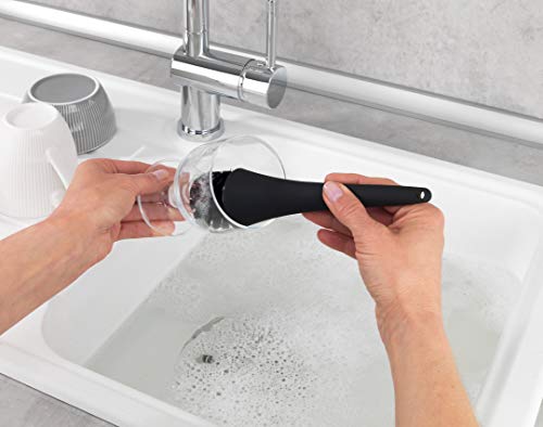 Contenuto della confezione: organizer per lavabo Empire in nero di WENKO, incluso dispenser di sapone, spazzola per piatti e supporto, dimensioni (L x A x P): 11 x 19 x 12,5 cm, capacità del dispenser: 250 ml.