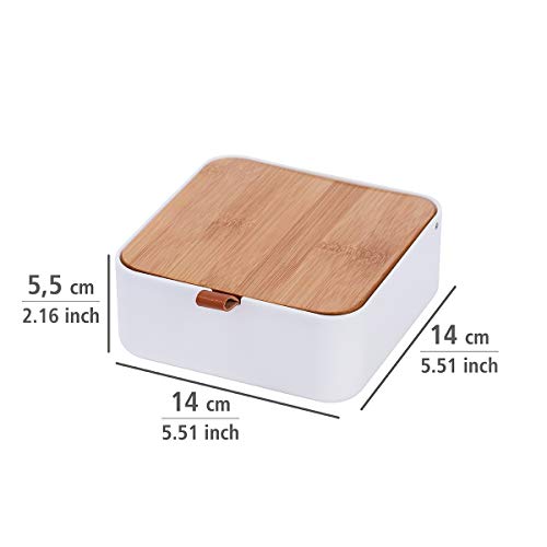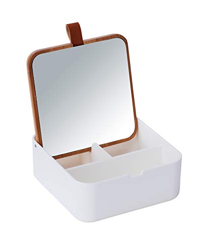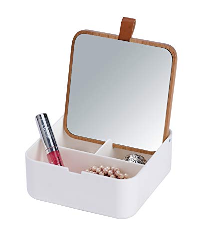 WENKO Organizzatore con coperchio Bovisa bianco - Organizzatore cosmesi con 3 scomparti e specchio, superficie specchiante: 13 x 13 cm 100 % ingrandimento, Plastica, 14 x 5.5 x 14 cm, Bianco