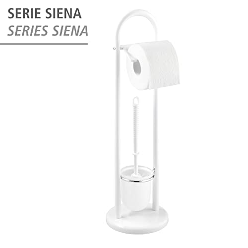 WENKO Piantana portarotolo e scopino WC Siena bianco, Acciaio, 19 x 63 x 19 cm, Bianco