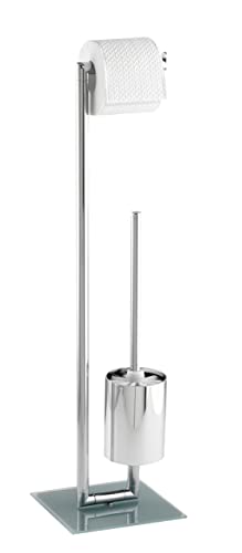 WENKO Piantana portarotolo e scopino WC Style, Acciaio inossidabile, 19 x 73 x 19 cm, Argento lucido