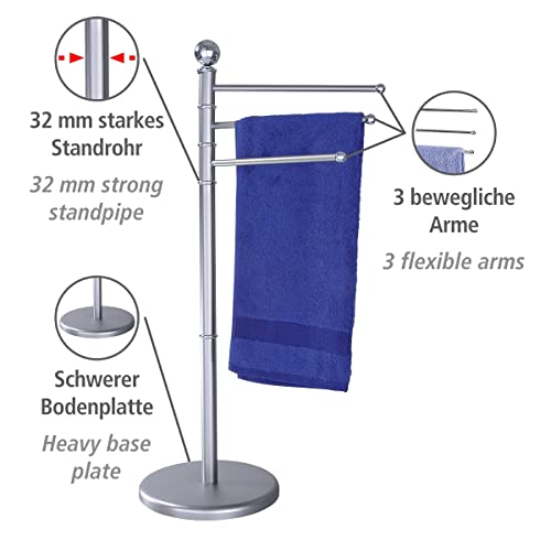 WENKO Piantana portasalviette cromo spazzolato - 3 bracci mobili, Acciaio, 48.5 x 90 x 28.5 cm, Satinato