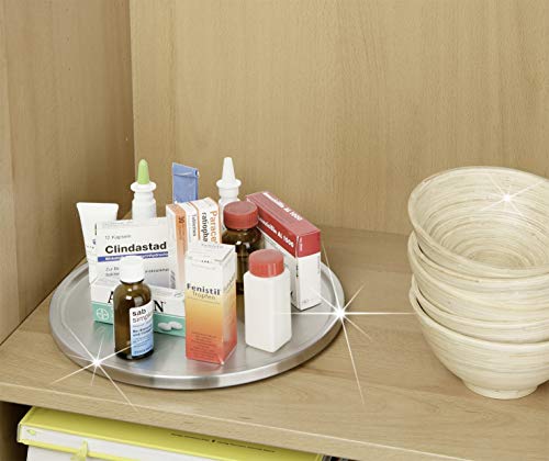 WENKO Piatto girevole in acciaio inox Uno - piatto girevole, Acciaio inossidabile, 26.5 x 1.5 x 26.5 cm, Argento opaco