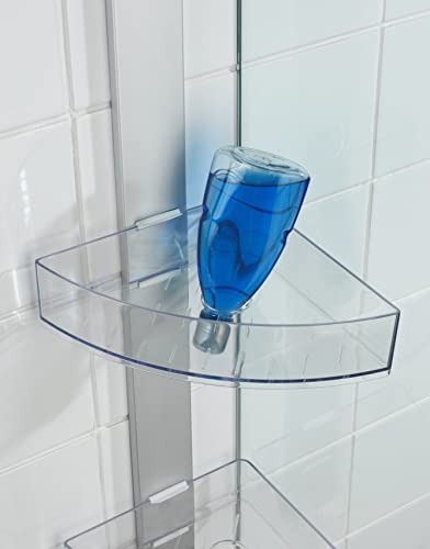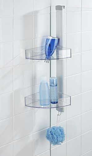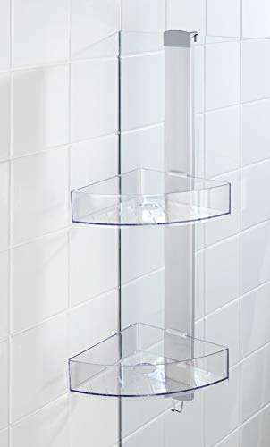 WENKO Portaoggetti angolare da doccia Premium, Alluminio, 20 x 71 x 21 cm, Argento opaco