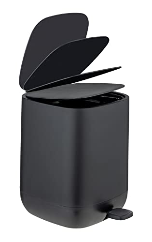 WENKO Portarifiuti a Pedale Davos 6.5 litri, per Cosmetici Puristico con Chiusura Automatica Easy-Close, nel Moderno Design "All Black" per il Bagno, BPA Free, 23.5 x 26 x 27.5 cm, Colore Nero Opaco