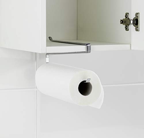 WENKO Portarotolo carta cucina aggancio a ripiano, Metallo cromato, 31 x 10 x 1 cm, Argento lucido