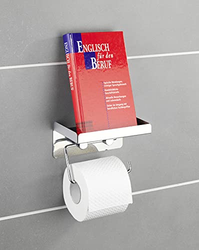 WENKO Portarotolo con portaoggetti grande acciaio inossidabile, Acciaio inossidabile, 16 x 12.5 x 11.5 cm, Lucido