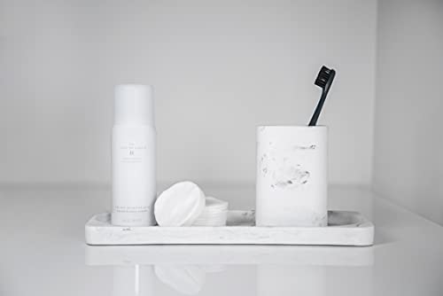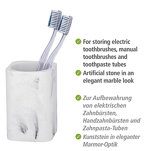 Design raffinato: l'elegante bicchiere portaspazzolini dal look effetto pietra naturale di colore bianco, con delicata struttura marmorea di colore grigio, aggiunge un tocco originale alla vostra stanza da bagno e toilette per gli ospiti, lasciando con poca fatica un'impronta indelebile