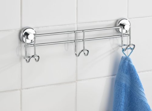 WENKO Power-Loc Barra Appendino Sion, 3 Ganci, Fissaggio Senza Trapano, Acciaio, Materiale Plastico, 5 x 8,5 x 31 cm, Cromo, Pietra