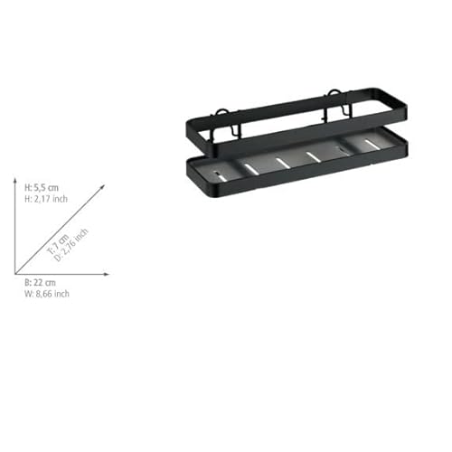 WENKO Scaffale per le spezie Gala, portaspezie per spezie ed utensili da cucina, custodia a portata di mano e ordinata, in metallo piatto di qualità verniciato a polvere in nero, 22 x 5,5 x 7 cm