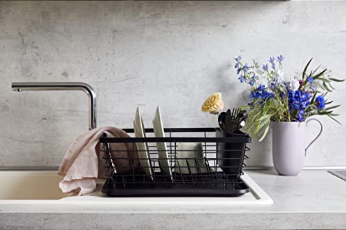 WENKO Scolapiatti scolapiatti per piatti, ideale per sedersi accanto al lavandino, realizzato in metallo verniciato a polvere e plastica, 36 x 30,5 x 15 cm, nero