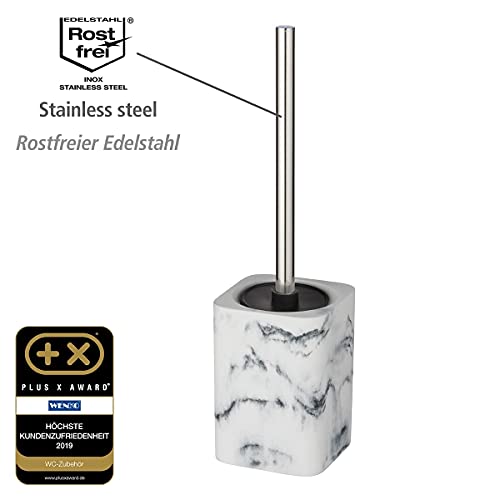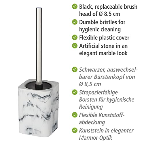 WENKO Set di scopino per WC Desio, elegante portascopino in pietra artificiale effetto marmo, design elegante per accessori da bagno con scopino igienico, 10,1 x 36,5 x 10,1 cm