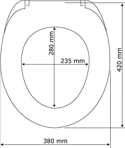 Dimensioni (L x P): Copriwater - 37,5 x 45 cm / Anello esterno - 38 x 42 cm / Anello interno - 23,5 x 28 cm / Distanza fissaggio - 10,5-19,5 cm