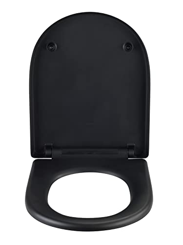 WENKO Sedile WC Exclusive n. 3 con meccanismo di abbassamento automatico, adatto per Villeroy & Boch O.novo e ceramiche d'uso commerciale, in Duroplast antibatterico, 36,5 x 45 cm, nero