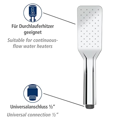 WENKO Soffione doccia Automatic Cleaning Cromo - Doccetta a mano con impugnatura universale con sistema anticalcare autopulente, ABS, 5.8 x 23.5 cm, Cromo