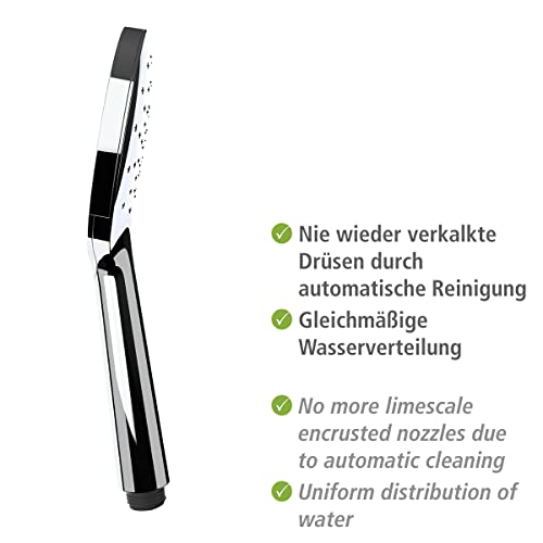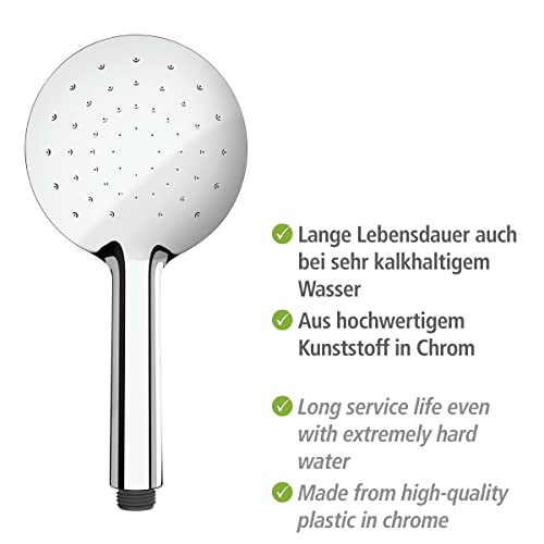 WENKO Soffione doccia Automatic Cleaning Cromo, Ø 12 cm - Doccetta a mano con impugnatura universale con sistema anticalcare autopulente, ABS, 12 x 12 cm, Cromo