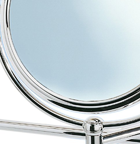 WENKO Specchio da bagno a parete Deluxe - regolabile in altezza, orientabile, superficie specchiante ø 19 cm 500 % ingrandimento, Acciaio, 23 x 28.5 x 33 cm, Cromo